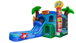 • The equipment includes: Aloha Bounce House, 1.5hp blower, 50ft /100ft extension cord and water hose, 4 stakes (grass) or sand bags (pavement or indoors)