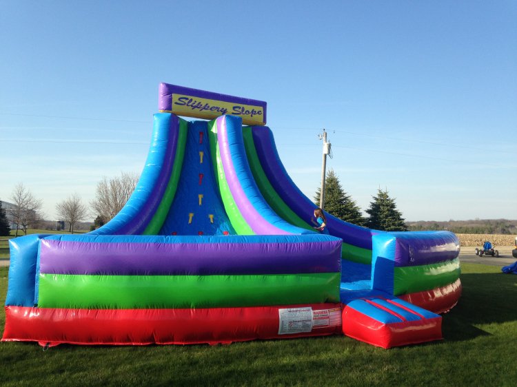 - The Slippery Slope features fantastic 1 on 1 competition as players attempt to climb the slope and place their flag higher than their opponent. A wonderful addition to fill that corner space at your indoor event and it's also great for outdoor events!